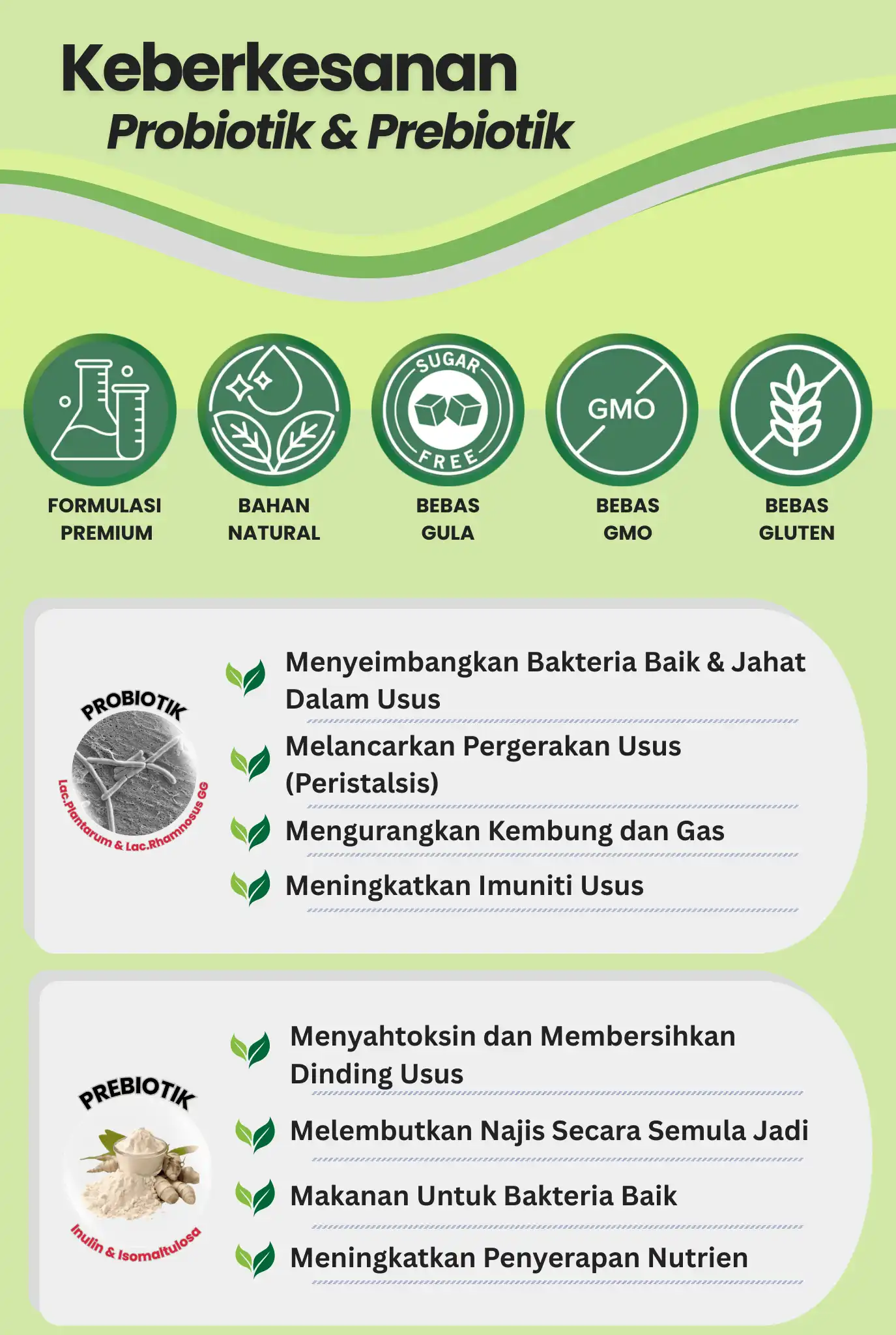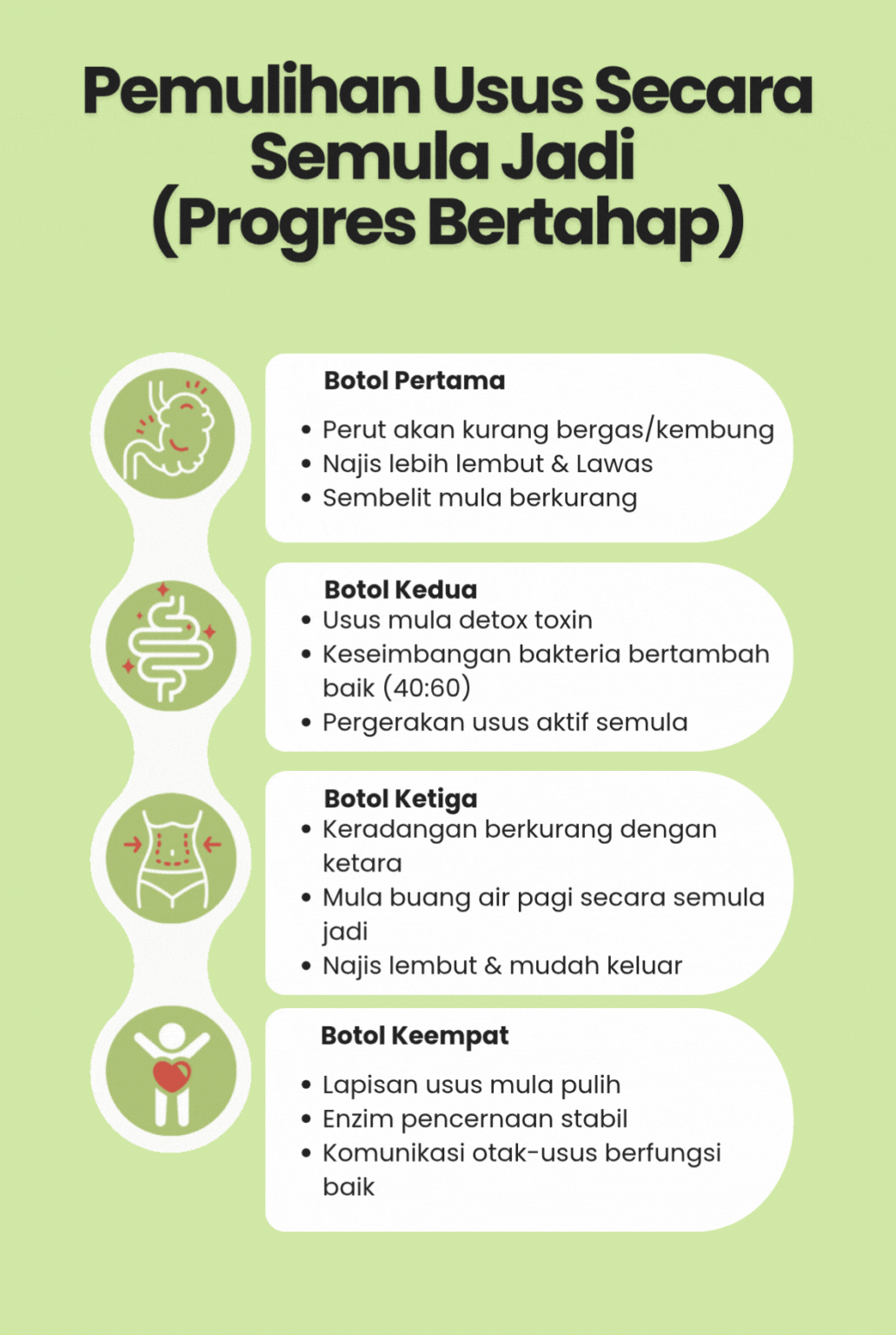USUS DIPULIHKAN. BAKTERIA DISEIMBANGKAN. SEMBELIT HILANG.